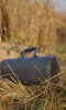 Closes into a structured cylindrical holdall.